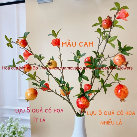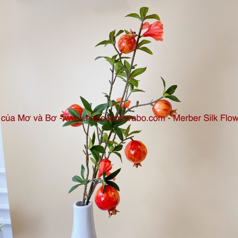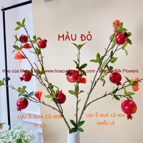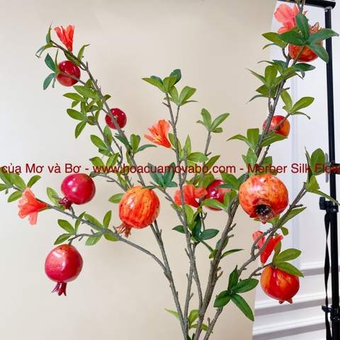 ✔️ Cành gồm 5 quả lựu, chiều dài 1 cành là 75cm - 80cmh - Có kèm lá xanh rất xinh mọi người nhé